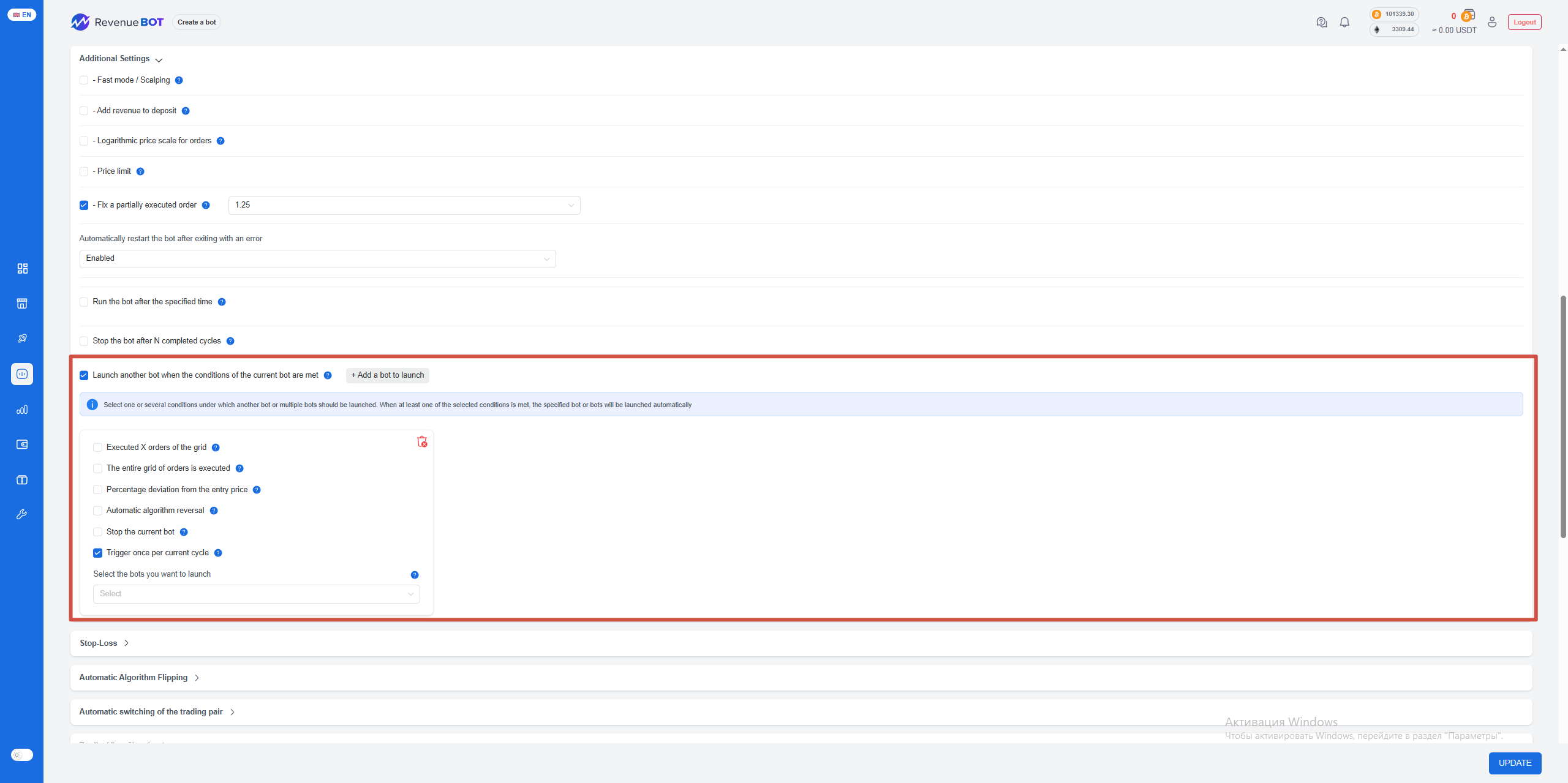When at least one of them is triggered — the selected bot (or multiple bots) will start automatically.